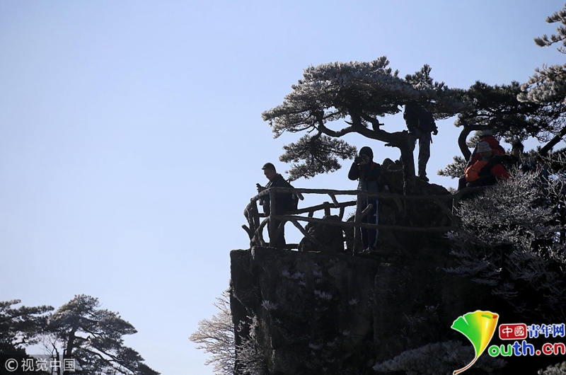 4月15日,安徽黃山出現(xiàn)了四月陽(yáng)春罕見(jiàn)的霧凇奇觀。圖片作者:施廣德/視覺(jué)中國(guó)