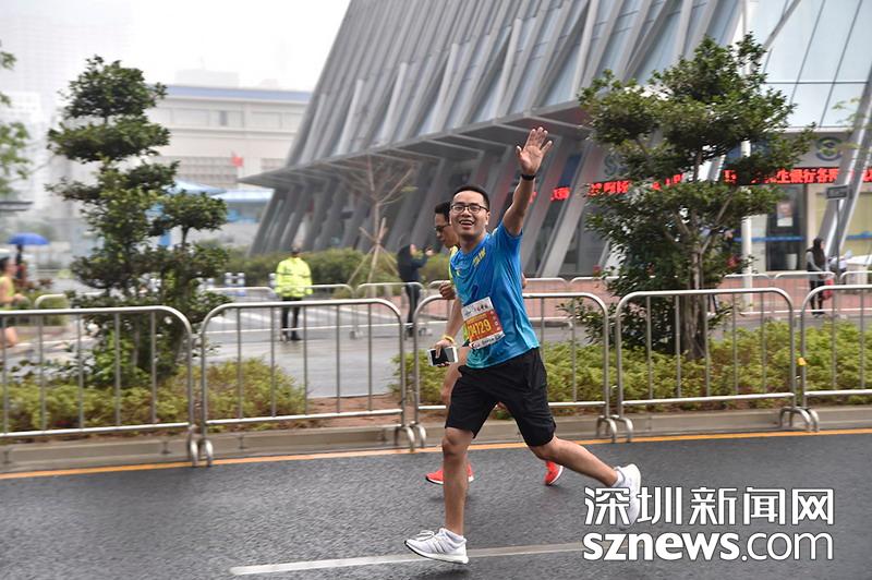 2018年12月16日訊(記者楊浩瀚)2018年12月16日,深圳國(guó)際馬拉松位于后海的折返點(diǎn),一名選手向鏡頭招手。