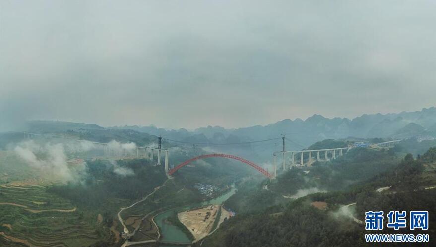 在重慶涪陵拍攝的渝懷鐵路涪秀二線重點工程——烏江右線大橋(10月23日無人機拍攝)。10月23日,由中鐵四局承建的渝懷鐵路涪秀二線重點工程——烏江右線大橋主跨成功合龍,標志著大橋主體工程全部順利結(jié)束。烏江右線大橋項目全程460.1米,主跨192米,跨越烏江和319國道。在兩年多的建設(shè)過程中,施工人員攻克了“不等高墩”“不對稱邊跨”“邊跨入隧”等多個技術(shù)難題。新華社記者王全超攝