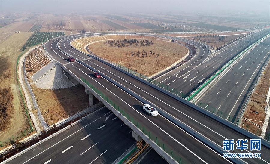 12月16日無(wú)人機(jī)拍攝的京秦高速公路二期工程河北玉田西進(jìn)出口處的立交橋。新華社記者楊世堯攝