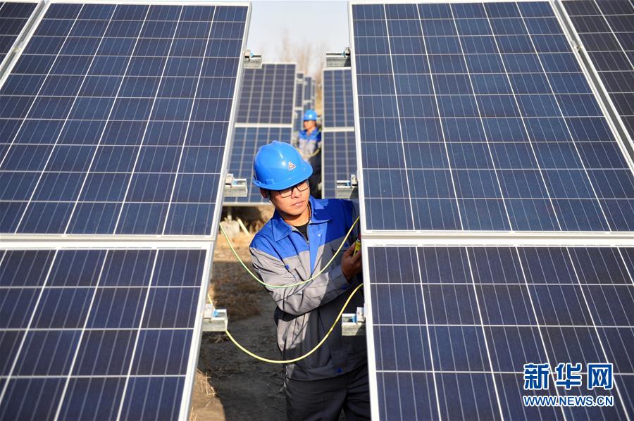 近年來,河北省海興縣積極探索光伏產(chǎn)業(yè)扶貧新路,采用“政府+企業(yè)+貧困戶”的合作模式,整合流轉(zhuǎn)全縣3800余畝鹽堿荒地,建設(shè)了24個村級光伏發(fā)電站,提高鹽堿荒地利用效率和貧困戶收益。 新華社記者 牟宇 攝