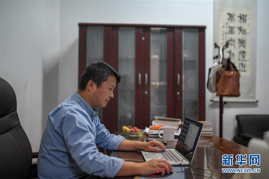 2018年4月12日,在埃及首都開羅,泛阿網(wǎng)絡公司聯(lián)合創(chuàng)始人、中東北非總經(jīng)理馬強在辦公室工作。