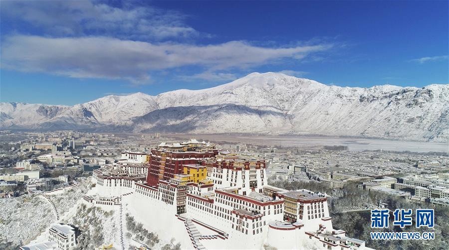 12月19日無人機(jī)拍攝的雪后的布達(dá)拉宮。 12月18日,西藏拉薩市迎來今年入冬以來的首場降雪。19日清晨,拉薩雪后初霽,處處銀裝素裹,盡顯雪域高原之美。 新華社記者普布扎西攝