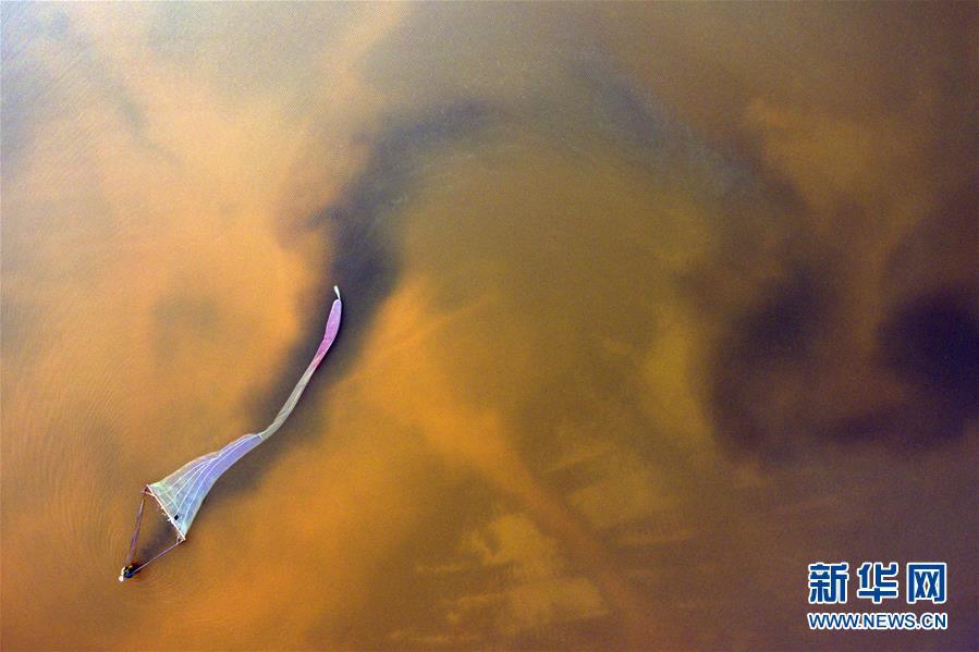 2018年7月6日,捕撈人員在山西運(yùn)城鹽湖內(nèi)捕撈鹽水蟲(chóng)。 大地之色,俯仰之間;壯美山河,是我的祖國(guó)。2018年,新華社記者操縱無(wú)人機(jī)“飛閱”華夏大地,在最美的時(shí)節(jié),定格下她的色彩斑斕。 新華社記者 曹陽(yáng) 攝