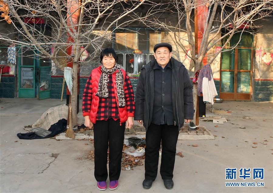 12月20日,青城鎮(zhèn)菜園村村民韓貽崗(右)和愛人在舊居院內(nèi)拍照紀(jì)念。 新華社記者 朱崢攝