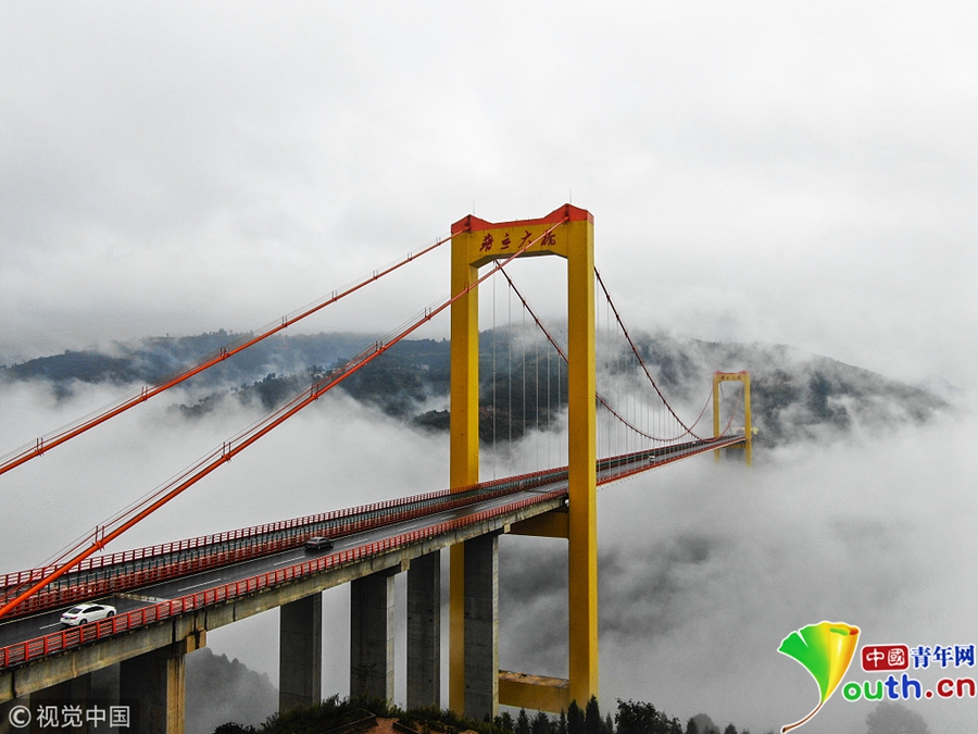 普立大橋云飄霧繞如仙境 一路風光美不勝收