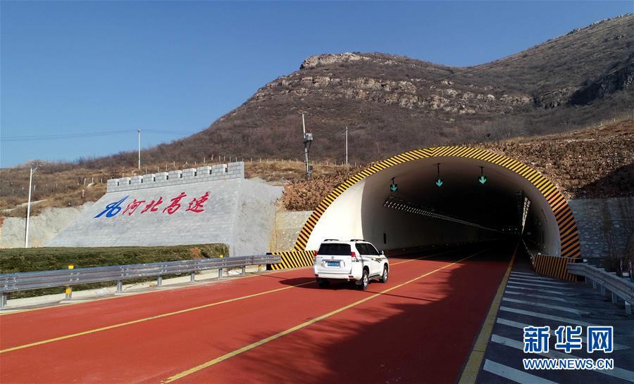12月16日,一輛汽車行駛在京秦高速公路二期工程河北玉田境內(nèi)的鳳凰頂隧道路段(無人機拍攝)。 新華社記者楊世堯攝
