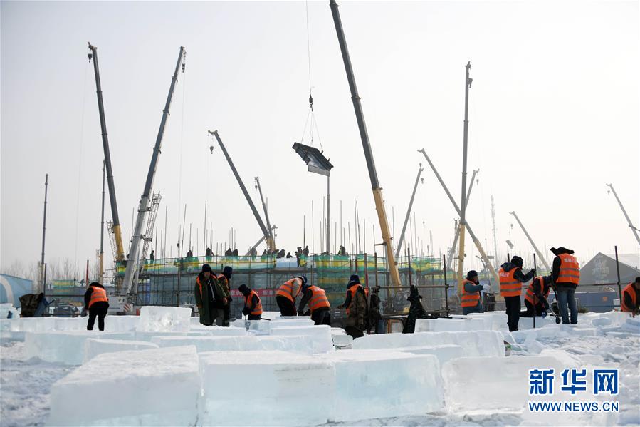 目前,以“筑夢冰天雪地,共享金山銀山”為主題的第二十屆哈爾濱冰雪大世界正在施工,現(xiàn)場一片繁忙景象。 新華社記者 王建威 攝