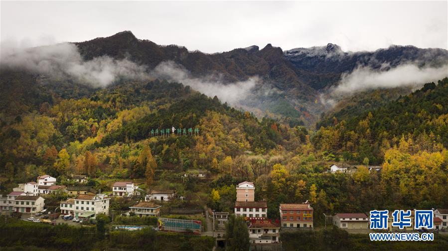 11月5日無人機(jī)拍攝的陜西省漢中市佛坪縣城旁的秦嶺景色。 新華社記者陶明攝