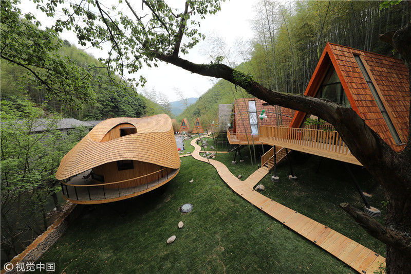 2018年4月22日,浙江寧波,樹蛙部落的特色房屋。張培堅/視覺中國