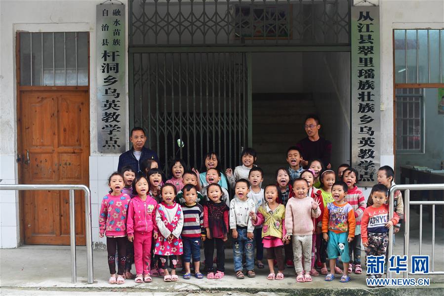 烏英教學點“一??鐑墒^(qū)”,目前有廣西籍學生18名,貴州籍學生9名,廣西貴州籍老師各1名。 烏英苗寨位于黔桂交界的大苗山深處,共有140戶,其中100戶屬廣西柳州市融水苗族自治縣桿洞鄉(xiāng)黨鳩村,40戶屬貴州省從江縣翠里瑤族壯族鄉(xiāng)南岑村。由于地處偏遠,山多地少,經(jīng)濟發(fā)展緩慢,目前整個苗寨還有76戶是貧困戶。 面對艱巨的脫貧任務,當?shù)攸h委政府在努力改善烏英苗寨公共基礎(chǔ)設施的同時,因地制宜,帶動群眾積極發(fā)展特色產(chǎn)業(yè)。從2017年11月至今的一年多時間,這里發(fā)生了很大改變:10戶村民新建了木樓,120多戶完成“三改”(改廁改廚改圈),1名貧困考生考上大學,1戶購買新汽車,4對新人舉行了婚禮,寬帶網(wǎng)絡開始進入貧困戶家庭,苗寨修建了新的辦公大樓和戲臺,安裝了4盞太陽能路燈,購買了40多個新蘆笙,水果種植專業(yè)合作社2018年種植的百香果也開始有所收獲,18戶貧困戶進入脫貧公示階段…… 烏英苗寨600多名黔桂苗族群眾,正在用勤勞的手,拔窮根摘窮帽,一起創(chuàng)造美好的明天。