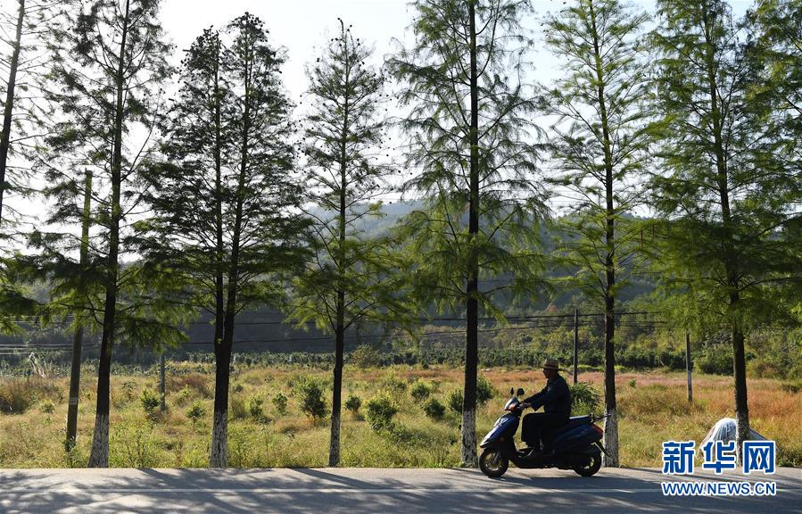 舒港發(fā)騎著電動車行進在村子里(10月28日攝)。