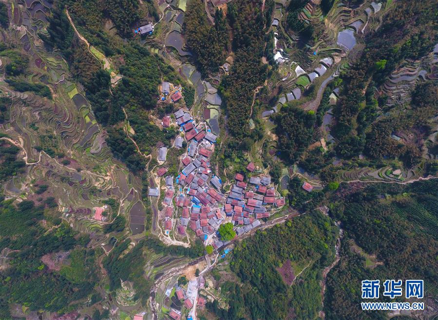 位于大苗山深處的烏英苗寨(3月27日無人機拍攝)。