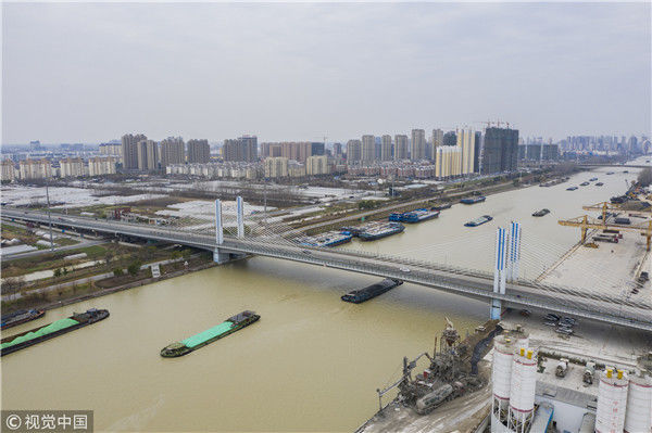2018年12月27日,江蘇淮安,航拍京杭大運(yùn)河淮安段冬日景色。