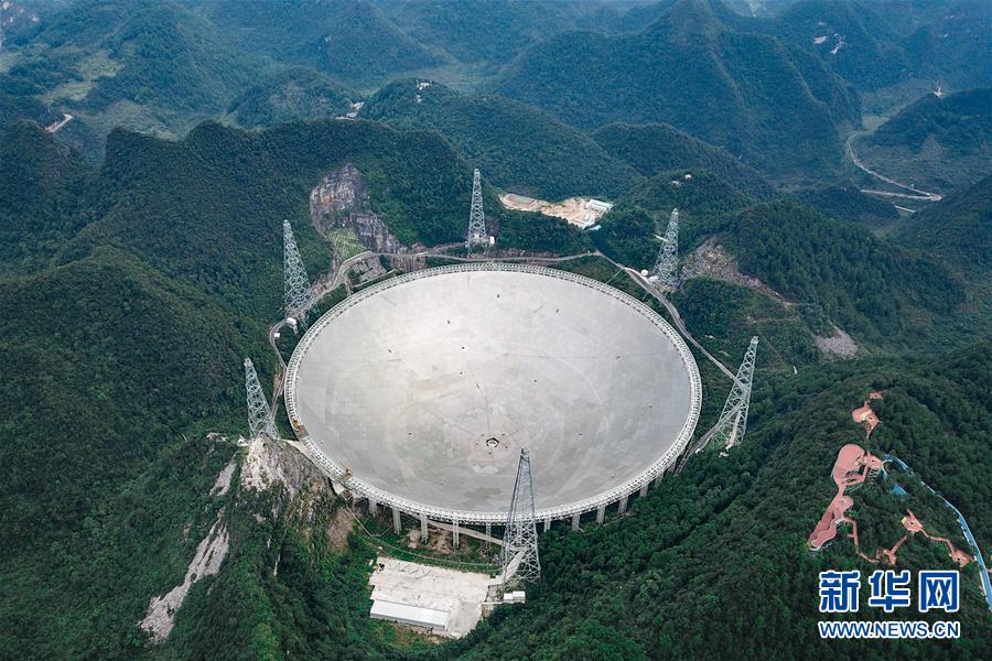9月10日無人機(jī)拍攝的“中國天眼”全景。被譽(yù)為“中國天眼”的500米口徑球面射電望遠(yuǎn)鏡(FAST),經(jīng)過兩年的緊張調(diào)試工作,現(xiàn)已經(jīng)實現(xiàn)了跟蹤、漂移掃描、運動中掃描等多種觀測模式。