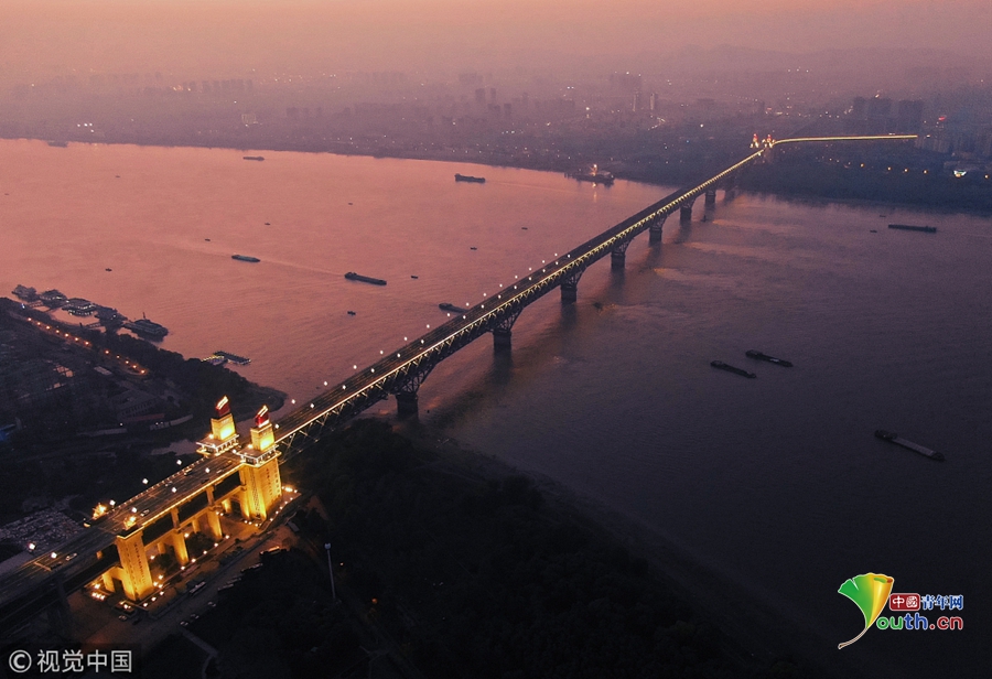 2018年12月13日,江蘇南京,“一橋飛架南北,天塹變通途?!弊鳛槲覈?guó)第一座自行設(shè)計(jì)和建造的雙層鐵路、公路兩用橋,南京長(zhǎng)江大橋在我國(guó)橋梁史上的重要地位不言而喻。從1968年建成后的48年間,它就如同一條巨龍,始終在長(zhǎng)江上默默守護(hù)著人來車往。南京長(zhǎng)江大橋上層是公路橋,下層為雙軌復(fù)線鐵路橋,連接津浦鐵路與滬寧鐵路干線,是我國(guó)南北交通要津和命脈。近年來,由于南京長(zhǎng)江大橋公路橋的實(shí)際通行荷載遠(yuǎn)超原先設(shè)計(jì)標(biāo)準(zhǔn),不僅橋面上擁堵?,F(xiàn),橋梁本身的種種“病害”也日益加深。圖為2018年12月13日,夜幕降臨,南京長(zhǎng)江大橋歸位后的玉蘭花燈重新點(diǎn)亮。大橋玉蘭花燈柱共有299根,每根燈柱上有5盞玉蘭花燈,1大4小,一共1495盞。方東旭/視覺中國(guó)