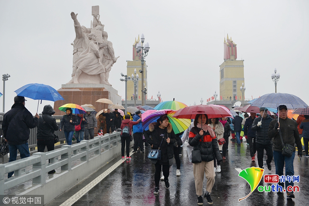 2018年12月26日,南京。南京長(zhǎng)江大橋維修改造工程竣工通車在即,12月26日至28日三天向公眾開放,12月26日,“市民開放日”首日,早晨九時(shí)許,雖然下著雨,但記者在南京長(zhǎng)江大橋入口和橋上看到,如織的市民打著傘來到大橋,整個(gè)橋上全是撐傘觀看的市民,足有萬人,十分壯觀。
