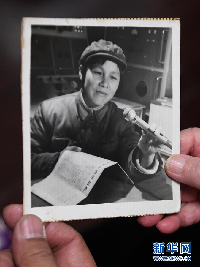 原“福建前線廣播電臺(tái)”廣播員陳菲菲當(dāng)年向金門播音的老照片。 新華社記者 姜克紅 攝