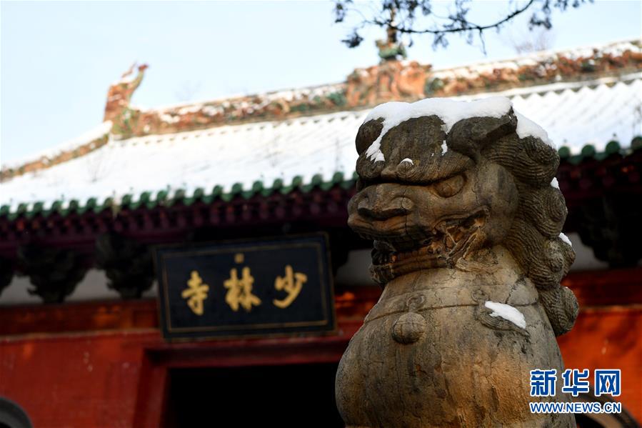 1月10日無人機拍攝的少林寺一景。當日,雪后初霽,河南登封少林寺分外秀美。新華社記者 李嘉南 攝