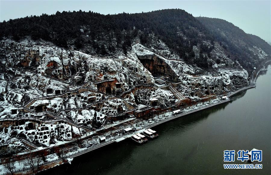 當(dāng)日,雪后的河南洛陽(yáng)龍門石窟景區(qū)銀裝素裹,一幅天然的水墨畫(huà)卷徐徐展開(kāi)。