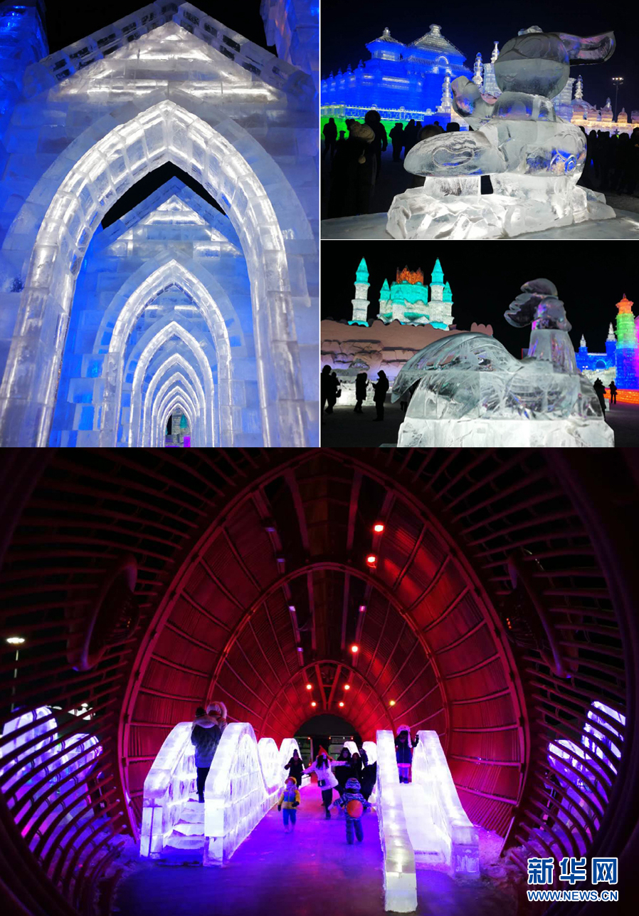 1月5日拍攝的冰雪大世界夜景 新華網(wǎng)記者 張明宇 攝