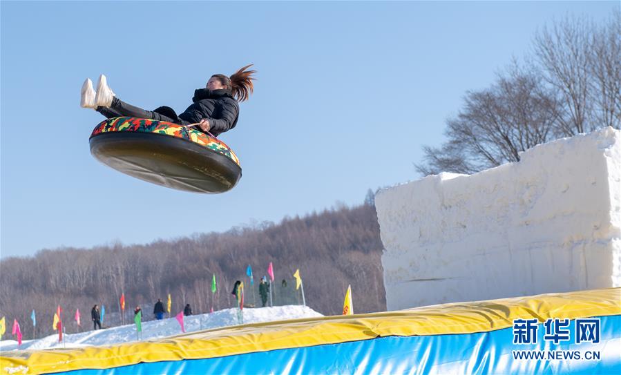 1月10日,在舒蘭市二合屯,游客體驗雪圈游戲項目。 新華社記者張楠攝
