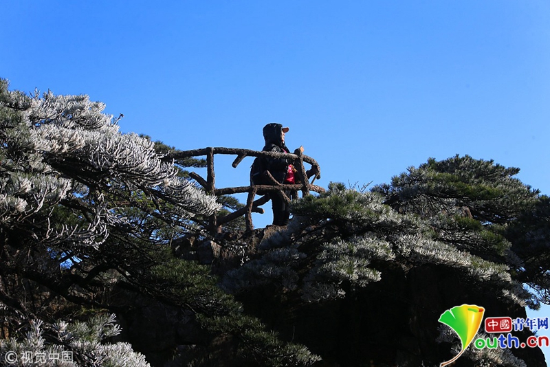 安徽黃山,受強(qiáng)冷空氣影響,氣溫突降,出現(xiàn)了四月陽春罕見的霧凇奇觀。