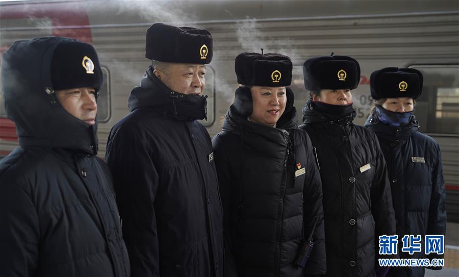 1月11日,在滿洲里火車站站臺,由于氣溫近零下30攝氏度,“金鑰匙”服務(wù)臺客運員“呵氣成霧”。