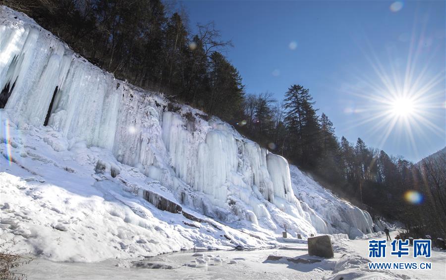 位于吉林省長白縣的十五道溝望天鵝風(fēng)景區(qū),屬長白山余脈。這里生態(tài)原始,古樹參天,瀑飛泉涌,怪石嶙峋,素有“北方九寨溝”的美譽(yù)。 冬日里,在形態(tài)各異的巖墻、巖柱間流淌的溪水因低溫凝固,仿若時間凍結(jié),一切流動的美便以湍急之勢凝于石壁,形成了半冰半水、亦靜亦動的冰瀑景觀,盡顯大自然的鬼斧神工。 新華社記者張楠攝