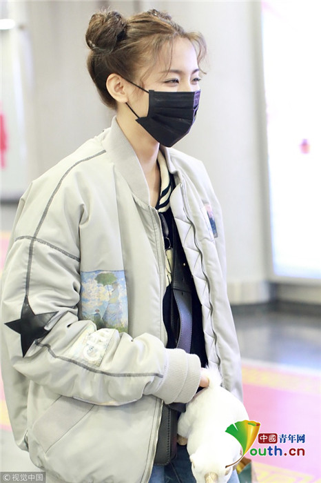 2019年1月14日,北京,楊超越現(xiàn)身機(jī)場。她扎哪吒頭活力十足,甩玩偶淘氣回眸,穿破洞褲露美腿,披面包服似自帶鼓風(fēng)機(jī)。