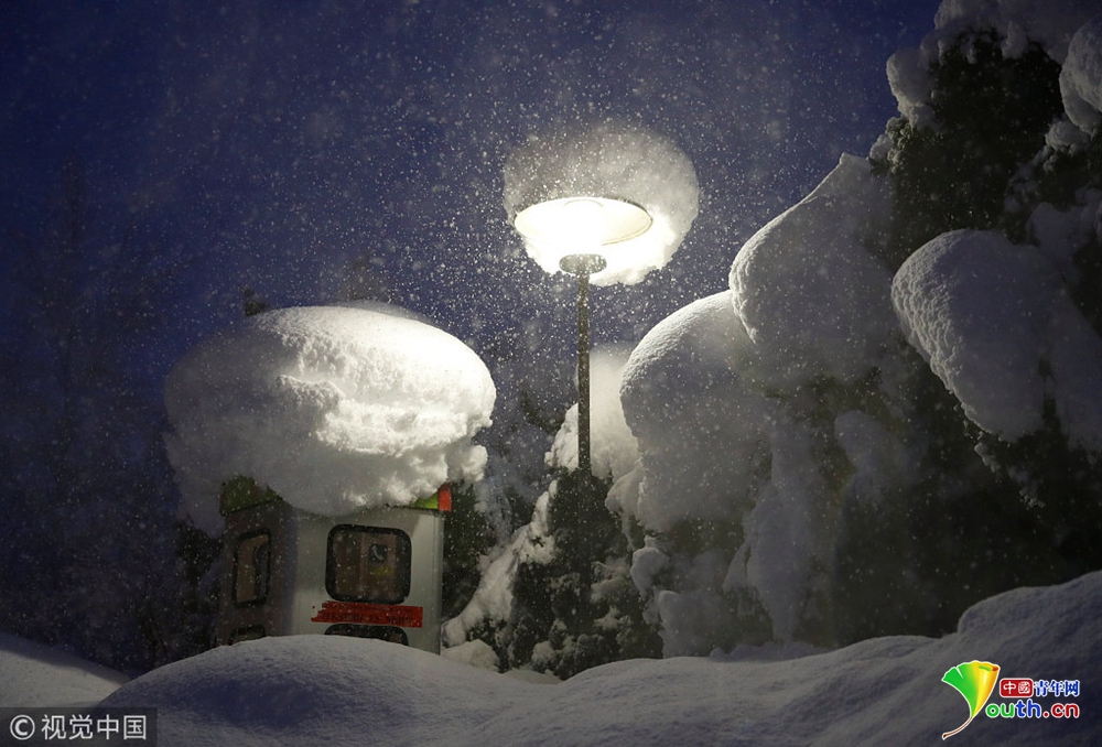 當(dāng)?shù)貢r(shí)間2019年1月14日,奧地利Reitdorf,當(dāng)?shù)卦庥霰╋L(fēng)雪襲擊,公交車站被積雪掩埋。