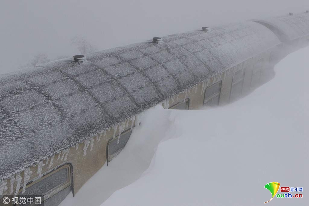 奧地利暴風(fēng)雪持續(xù) 公交車站被積雪掩埋