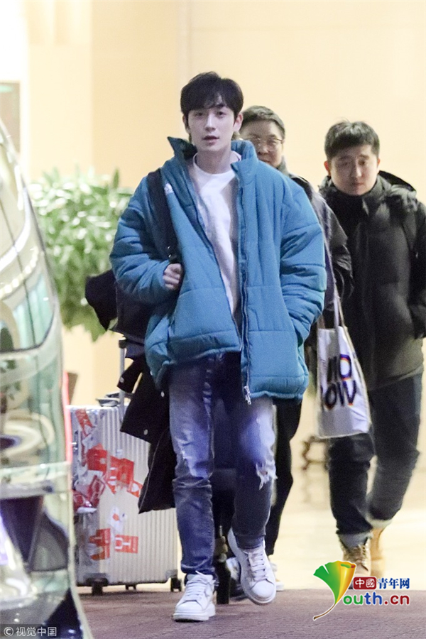 1月15日,北京,朱一龍現(xiàn)身機場。他穿綠色棉襖一路插兜保暖,搭配破洞褲潮范兒十足長腿搶鏡,打扮簡單毫無男神包袱,看鏡頭還一臉呆萌,但氣質仍然出眾。