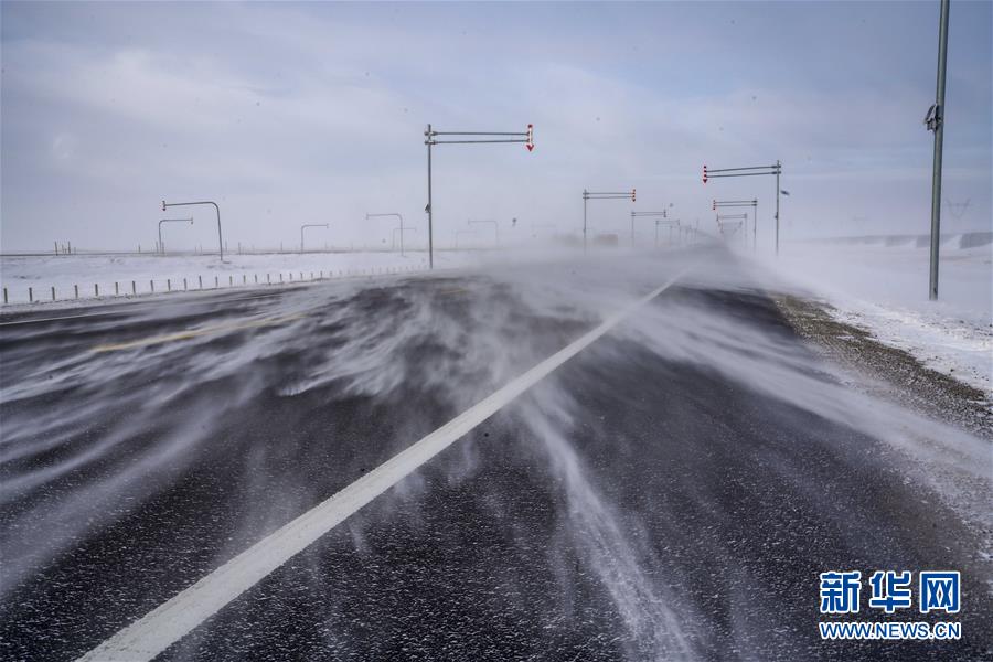 這是新疆瑪依塔斯風區(qū)內出現的“白毛風”現象(1月15日攝)。 瑪依塔斯風區(qū)位于新疆西北部額敏縣境內。這里東西風交替頻繁,一年大風天數超過150天,是世界上罕見的暴風雪災害地段。駐守在這里的新疆塔城公路管理局額敏分局瑪依塔斯應急保障基地,近年來連續(xù)裝備拋雪機等冰雪搶險救災裝備,有力地保障了這條道路的交通安全。 新華社記者趙戈攝
