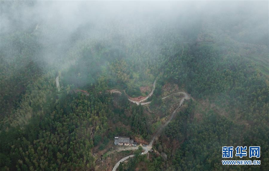 位于龍泉市牛頭嶺村群山之中的“七分醉”工作室(1月15日無(wú)人機(jī)拍攝)。 新華社記者翁忻旸攝