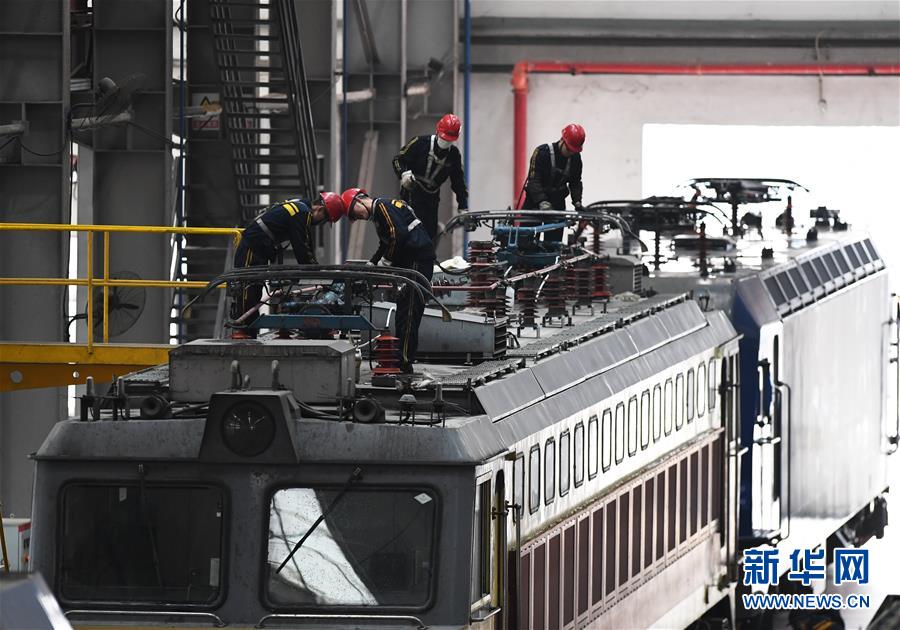 1月16日,重慶機(jī)務(wù)段職工在對機(jī)車車頂設(shè)備進(jìn)行檢修。 臨近春運(yùn),為確保春運(yùn)旅客和貨物列車運(yùn)輸安全,中國鐵路成都局集團(tuán)有限公司重慶機(jī)務(wù)段對全段機(jī)車進(jìn)行專項(xiàng)檢查、整修,為即將到來的春運(yùn)做準(zhǔn)備。 新華社記者王全超攝