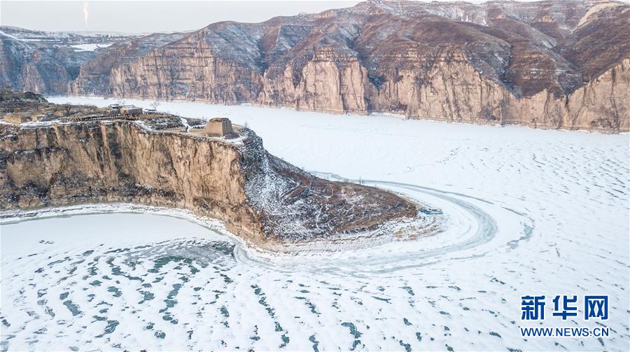 這是2月17日無(wú)人機(jī)拍攝的老牛灣雪景。黃河老牛灣位于山西省和內(nèi)蒙古自治區(qū)交界處。