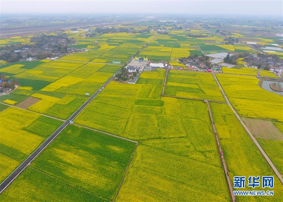 這是無(wú)人機(jī)航拍的廣漢市油菜花田(3月6日攝)。 新華社記者劉坤攝