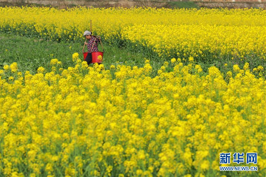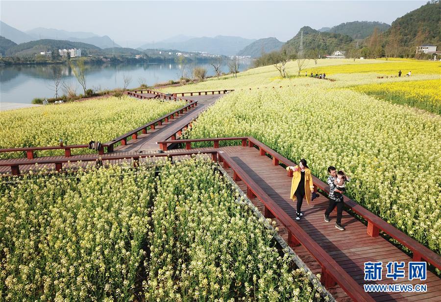 3月19日,游人在下涯鎮(zhèn)油菜花海中游玩。近日,浙江省建德市下涯鎮(zhèn)油菜花盛開,吸引不少游客前來踏春。 新華社記者翁忻旸攝