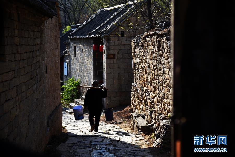3月31日,村民挑擔(dān)走在上九山村的一條小道上。山東省鄒城市石墻鎮(zhèn)上九山村始建于宋代,是一座依山而建的石頭村,有明清建筑風(fēng)格的古民居300余套,古樸傳統(tǒng)的村貌吸引眾多游客。2019年1月,上九山村入選第七批中國歷史文化名村。 新華社記者 王凱 攝