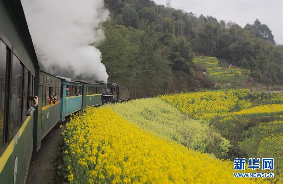 初春時(shí)節(jié),在花海中穿行的嘉陽(yáng)小火車(chē)迎來(lái)了每年的旅游旺季,眾多游客慕名前來(lái)乘坐。