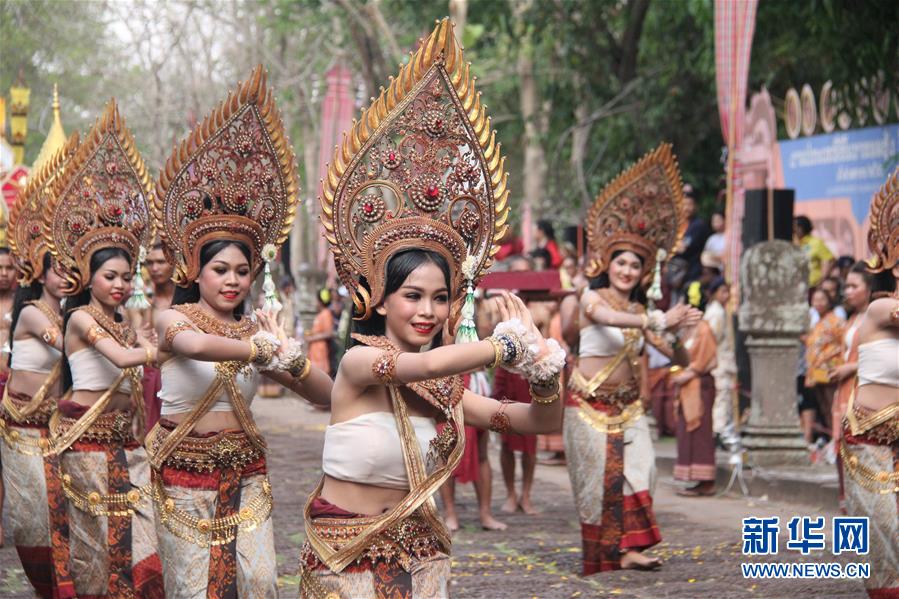 4月5日,在泰國(guó)武里南府,當(dāng)?shù)嘏源虬绯上膳臉幼釉谂羶z隆寺前跳舞。 一年一度的“登帕儂隆山節(jié)”在泰國(guó)東北部毗鄰柬埔寨的武里南府帕儂隆山舉辦。當(dāng)?shù)厝艘怨叛b巡游展示獨(dú)特的傳統(tǒng)文化,希望能吸引更多外國(guó)游客、促進(jìn)當(dāng)?shù)芈糜螛I(yè)發(fā)展。 新華社記者 楊舟 攝