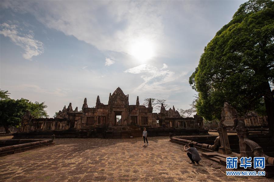 4月5日,游客參觀泰國武里南府低城寺。 一年一度的“登帕儂隆山節(jié)”在泰國東北部毗鄰柬埔寨的武里南府帕儂隆山舉辦。當(dāng)?shù)厝艘怨叛b巡游展示獨特的傳統(tǒng)文化,希望能吸引更多外國游客、促進(jìn)當(dāng)?shù)芈糜螛I(yè)發(fā)展。 新華社記者 張可任 攝