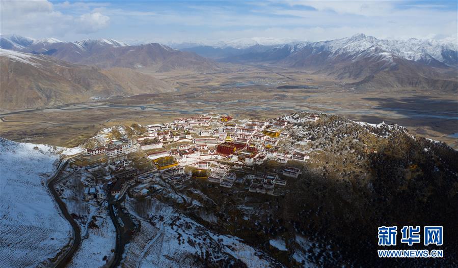 雪后的甘丹寺(4月8日無人機拍攝)。