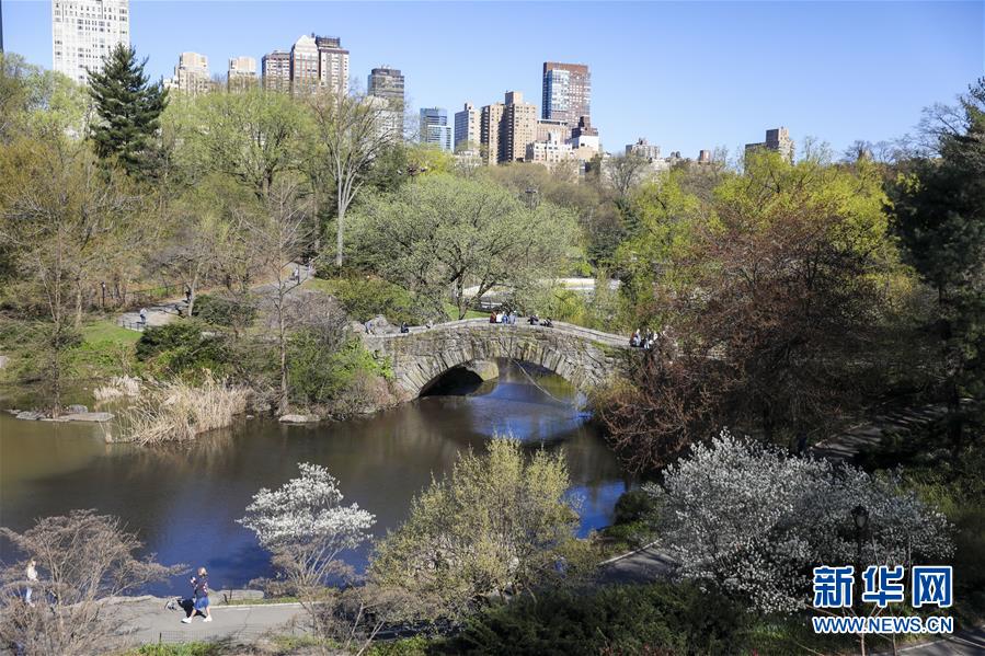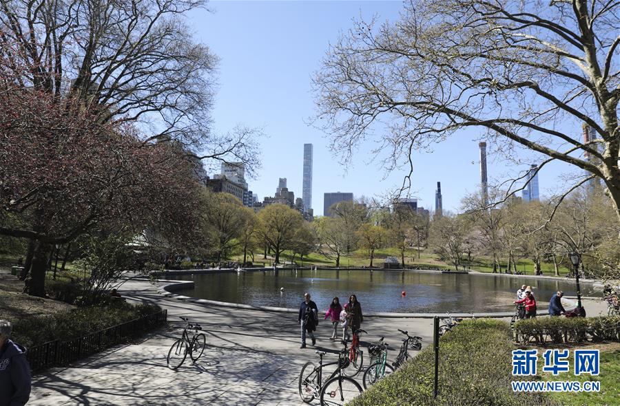 4月16日,人們?cè)诿绹~約中央公園游覽。 新華社記者 王迎 攝