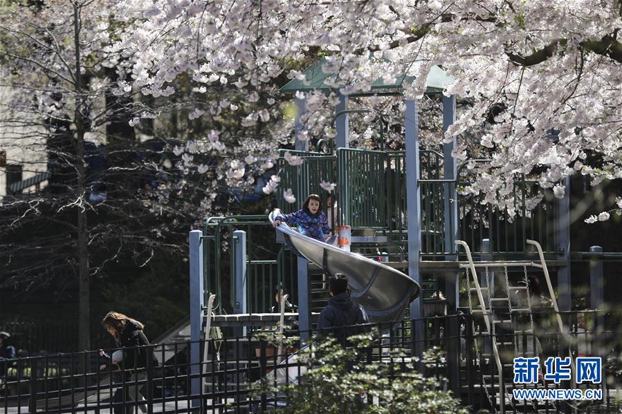 4月16日,人們?cè)诿绹~約中央公園游玩。 新華社記者 王迎 攝