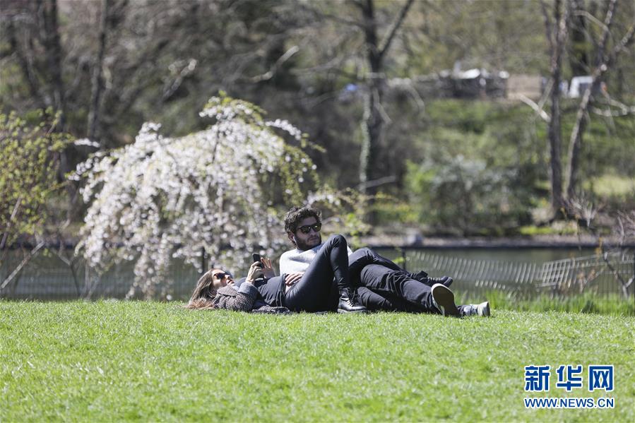 4月16日,人們?cè)诿绹~約中央公園享受春光。 新華社記者 王迎 攝