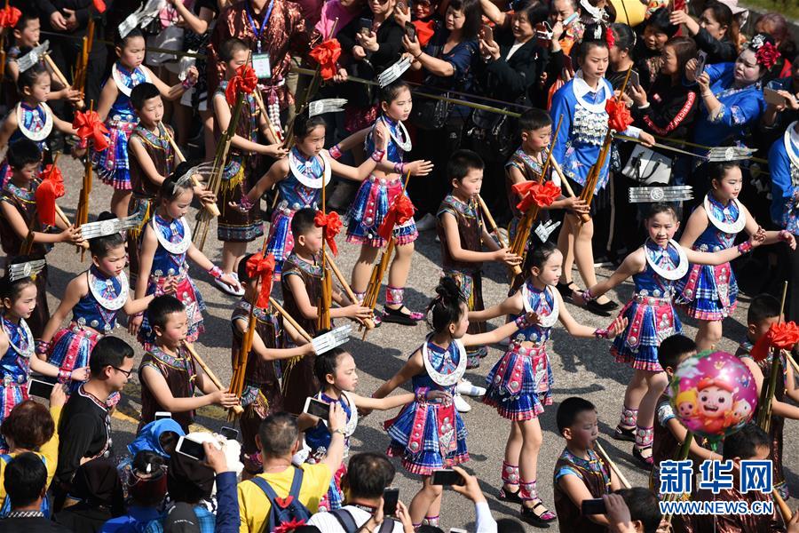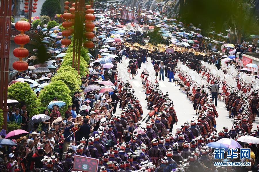 4月18日,臺(tái)江縣苗族群眾參加盛裝游演活動(dòng)。 當(dāng)日,貴州省黔東南苗族侗族自治州臺(tái)江縣迎來(lái)一年一度的苗族姊妹節(jié)。節(jié)日期間將舉行苗族盛裝游演、千人長(zhǎng)桌宴、千人游方體驗(yàn)、苗族手工創(chuàng)意大賽等一系列活動(dòng)。 姊妹節(jié)是臺(tái)江縣苗族同胞的傳統(tǒng)節(jié)日,2006年被列入第一批國(guó)家級(jí)非物質(zhì)文化遺產(chǎn)名錄。 新華社記者 楊文斌 攝