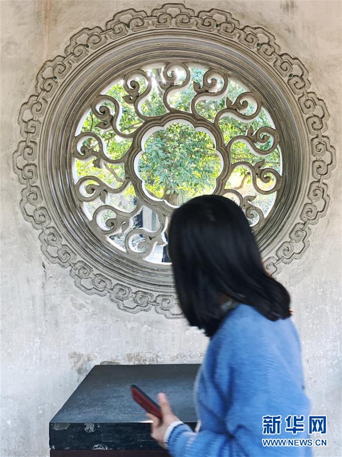 2019年4月1日,一名游客在中國(guó)蘇州耦園內(nèi)拍照。2000年,耦園和滄浪亭、藝圃、獅子林、退思園作為蘇州古典園林的擴(kuò)展項(xiàng)目被列入聯(lián)合國(guó)教科文組織世界文化遺產(chǎn)名單。 新華社記者杜涓涓攝