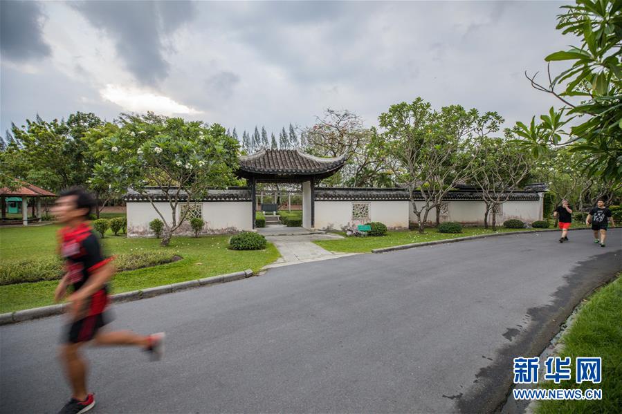 2019年4月3日,鍛煉身體的民眾經(jīng)過(guò)泰國(guó)曼谷九世王御園內(nèi)的中式園林“智樂園”。這座園林是1988年中國(guó)政府贈(zèng)送給泰國(guó)九世王普密蓬的60歲壽辰禮物,“智樂園”之名取自論語(yǔ)“仁者樂山,智者樂水”。 新華社記者張可任攝